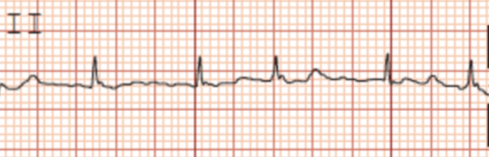 Notice how there are no p-waves, but there are “fibrillatory” waves between QRS complexes. The rhythm is also irregularly-irregular.